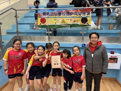 本年度九龍南區小學校際乒乓球比賽於1月20至22日假界限街體育館進行。恭喜我校乒乓球隊在九龍南區小學校際乒乓球比賽中表現出色,所有組別均勇奪獎項!感謝隊員們及家長們的努力與教練的悉心指導,為校爭光!讓我們一起為他們喝彩!