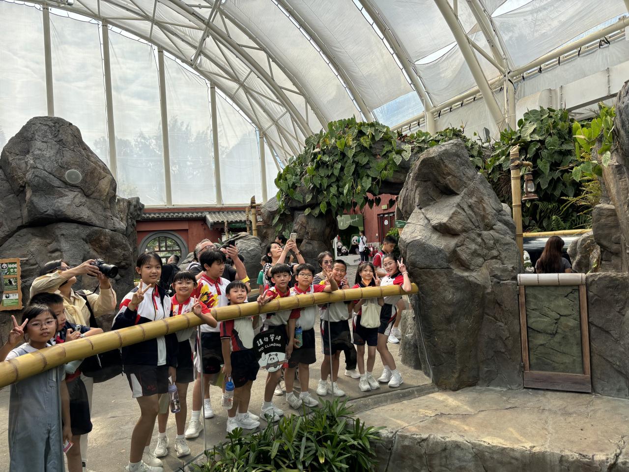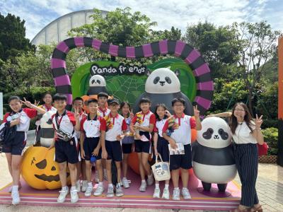 學校的環保大使在10月20日到訪香港海洋公園,展開了一場富有教育意義的「大熊貓探索之旅」活動。同學們有機會近距離觀察可愛的大熊貓盈盈、樂樂,了解牠們的生活習性及日常飲食習慣。這趟旅程讓環保大使們認識到大熊貓保育工作的重要性,以及保護其棲息地對維持生態平衡的關鍵作用。