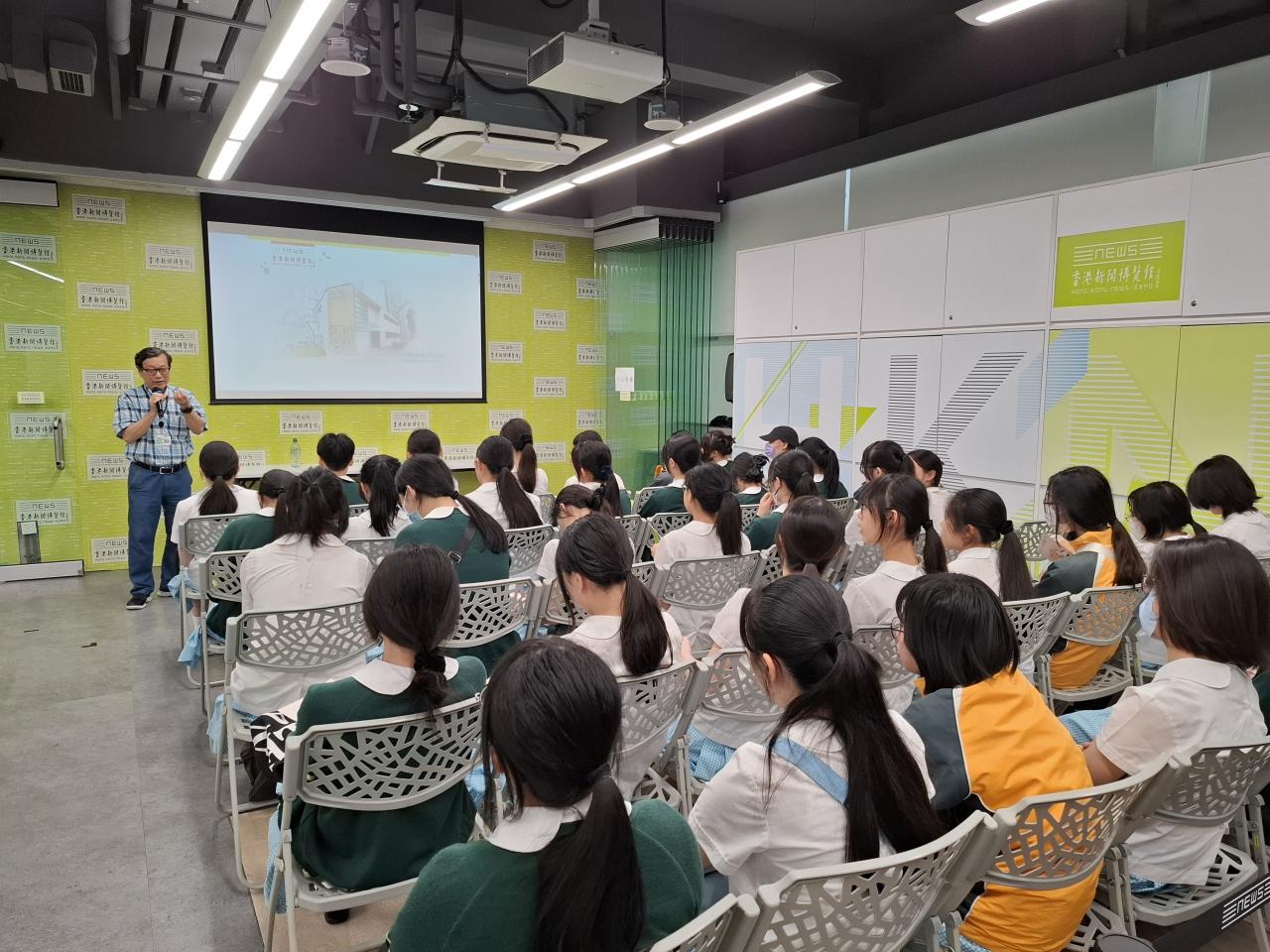 為加強學生對於香港傳媒的認識以及提升其資訊素養,本校安排中五級學生於7月4日到香港新聞博覽館參觀。學生先參與有關資訊素養的講座,由先前任職傳媒機構多年的職員為學生講解資訊素養的重要性,提點學生小心辨別資訊的真偽。之後由職員帶領進行導賞活動,讓學生認識香港傳媒的發展。其後學生利用館內設施進行學習活動,如嘗試在鏡頭前進行直播、考察各類媒體直播所用的設備、學習使用模擬直播室等。活動期間學生表現積極,專注投入。