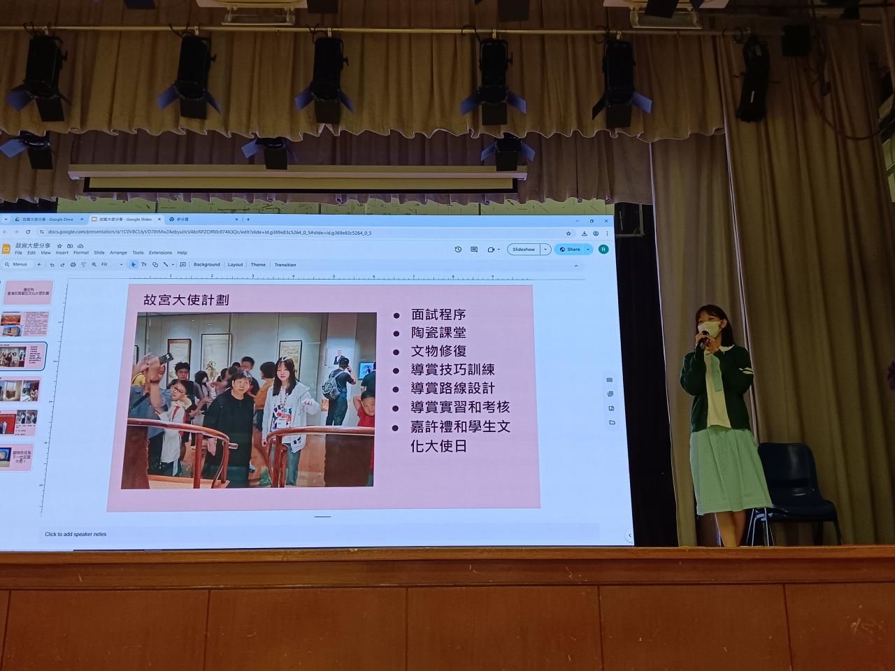 她將繼續與香港故宮文化博物館保持聯絡,積極參與博物館的後續活動。蘇同學亦透過校內活動推廣故宮文化,例如:2025年7月3日的「歷史科學習成果分享匯報」,她介紹故宮的歷史,並分享擔任故宮大使的經驗,使其他同學獲益良多。